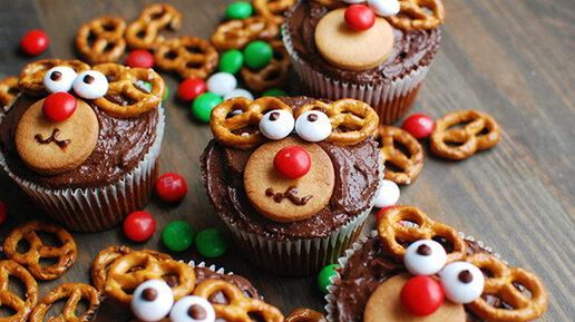 По-настоящему праздничные, красивые и вкусные блюда получаются, когда мы готовим их для детей, ну или для взрослых… у которых детство в одном известном месте заиграло. Как у нас сегодня. Поэтому не ищите в этой кулинарной подборке скучных салатов, скучных бутербродов и скучного мяса – их не будет! Шоколадные капкейки «Олени Санты» Разогреваем духовку до 170 С°. В миске размешиваем до однородной массы 125 гр сливочного масла со 125 гр сахара. Взбиваем два яйца и отправляем их в миску. Просеиваем 100 гр муки, добавляем 25 гр какао, 5 гр разрыхлителя и столовую ложку молока...