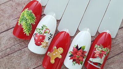До главного праздника года остается меньше месяца, а значит самое время занятся поиском идей новогоднего маникюра. И в этом нам конечно помогут новые слайдеры из нашей зимней коллекции. Сегодня мы рассмотрим вариант маникюра с символами зимы - еловыми ветками, зимними цветами и имбирными печеньками. Для выполнения данного дизайна нам понадобятся: