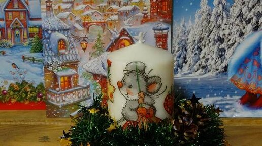 Декупаж свечи. Новогодний дизайн