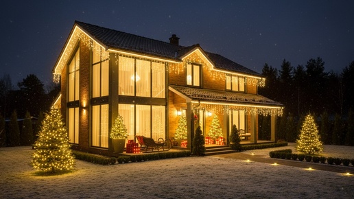 ✨ Украшаем дома и коттеджи под ключ: крыша 🎄 фасад 💡 вход 🏡 деревья и ёлки ✨ Работаем аккуратно и оперативно. Пришли фото дома +7(999)8508849 📲. Светвилл с 2016 года, реализовали более 800+ проектов,делали для известных клиентов...