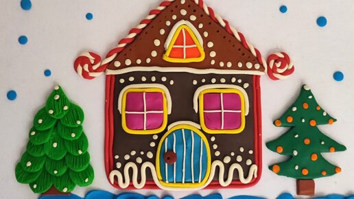 Аппликация из пластилина на картоне " Новогодний домик". Пошаговая инструкция с фото для детей.