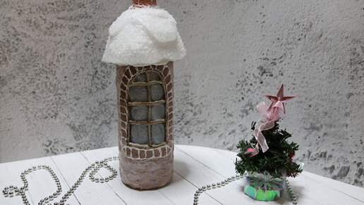 Зимний домик из картона и стеклянной бутылки: новогодний декор за копейки