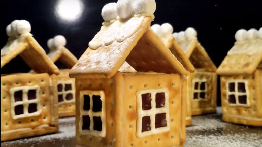 Новогодние домики - сказочный десерт без выпечки (Пора продумать меню на Новогодний стол -2020)