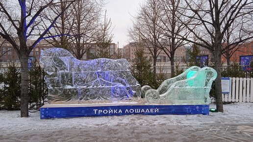 С 23 декабря 2022 года по 31 января 2023 года на набережной парка искусств «Музеон» прошел новогодний фестиваль «Ледовая Москва. В кругу семьи». Я успела сделать фотографии за день до закрытия фестиваля. На входе гостей фестиваля встречала ледяная скульптура Собора Василия Блаженного. Трон Снежной Королевы В центре набережной была выстроена из льда большая скульптура Кремля с шестью ледяными горками. Кататься на горках 30 января было нельзя из-за плюсовой температуры. Посетителям парка с детьми оставалось только фотографироваться...