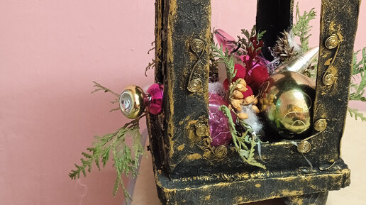Озадачилась я сделать фонарь " под старину" к Новому году. Просмотрела разные статьи и видео на эту тему и приступила к работе. Взяла гофрокартон от упаковки и разрезала его на удобные для работы части. Приготовила необходимые инструменты и материалы. Раскрой делала на удобной основе. Склеила скотчем полученные стороны будущего фонарика. Для того, чтобы стороны были зафиксированы, внутрь вставила картонный прямоугольник и приклеила его пистолетом. Потом продолжила собирать заготовленные части в целое изделие...