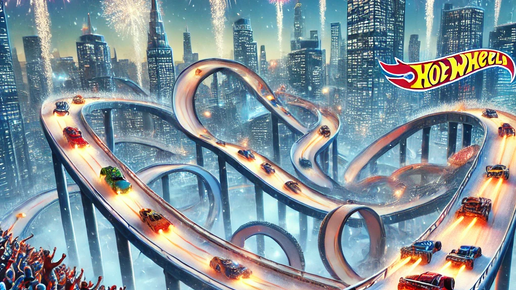 В преддверии Нового года в Хот Вилс Сити решили устроить нечто особенное — грандиозный новогодний заезд, чтобы собрать средства для детей, нуждающихся в помощи. Это должно было стать не просто гонкой, а настоящим праздником скорости, мастерства и добра. Центральная площадь города превратилась в стартовую точку, где была построена невероятная трасса. Её петли взмывали к небу, трамплины бросали машины в головокружительные прыжки, а туннели были освещены огоньками, как гирлянды на ёлке. На пути гонщиков ждали ледяные заносы, снежные горки и водопады из искр — всё, чтобы заезд стал зрелищным...