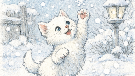 Он выбежал в открытое окно первого этажа так, будто ему подарили целый мир. Медленно падали крупные снежинки, кружились перед самым носом, и хотелось ловить их лапой, подпрыгивать, кувыркаться в пушистом снегу, пока всё внутри смеётся. Он не думал ни о маме, ни о трёх сестрёнках, ни о том, что дверь может закрыться. Он просто был — маленький, белый, любопытный, и этот снег казался игрой, которую придумали специально для него. Потом он устал. В груди появилось знакомое желание вернуться туда, где пахнет вылизанной шерстью и маминым молоком...