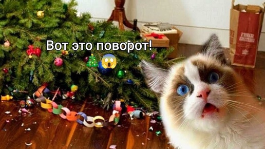 Новогодний кот и ёлка. Подборка смешных фотографий и мемов