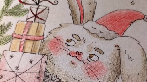 Всем здравствуйте! Каждый год в декабре я начинаю рисовать новогодние открытки для друзей и заказчиков. Использую для этого свою любимую акварельную склейку от "Палаццо" и акварельные карандаши. Собрала для вас всех новогодних кроликов в этой статье...