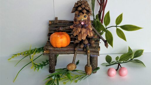 Композиция "Гном - лесовик на скамеечке" (поделки из природных материалов).