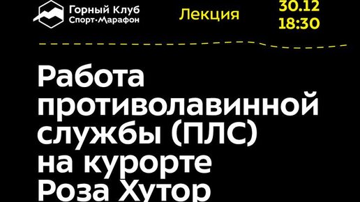 ⬇️ 📆 30 декабря 18:30 | среда Работа противолавинной службы (ПЛС) на курорте Роза Хутор Лекция от инженеров по проведению лавинных работ Роза Хутор, профессионалов с многолетним практическим опытом — Татьяны Вилимович и Станислава Галимова. На лекции вас ждет знакомство со службой, последовательный рассказ о подготовке Курорта к зимнему сезону, в том числе о том, как готовят систему Gazex, работа которой неизменно сопровождает отдых на горнолыжном курорте каждый зимний сезон. 📆 2 января 18:30 | пятница PUMA TRAINING: Комплексная тренировка...