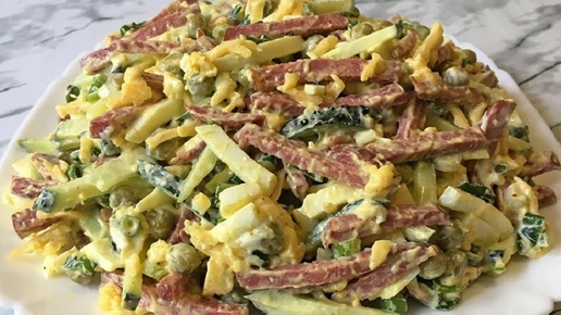 Новогодний салат за пару минут: праздничная вариация с колбасой и сыром для вашего стола
