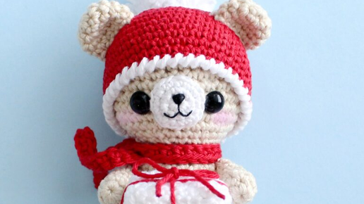 Новогодний мишка крючком: описание вязания Вязаный мишка амигуруми крючком с подарком от Amylie Freeman. Материалы: