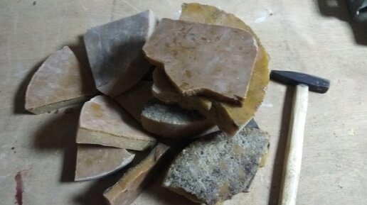 Все доброго дня. Вчера я решил заняться перетопкой воска, который у меня собрался за летний сезон 2018 года. Каждый пчеловод знает, что воском заниматься нужно, так как его нужно перерабатывать и обменивать на вощину или иной пчеловодческий инвентарь. Вот, что у меня было и что получилось. Воск я перетапливал на электрической плитке у себя в подвале. После перетопки я оставил воск на сутки в подвале и сегодня утром достал его из тары, в которую перелил вчера. Вот такой толщины получился у меня воск...