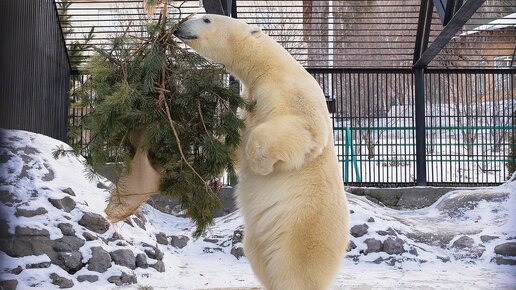 Белых медведей в красноярском «Роевом ручье» поздравили с Новым годом