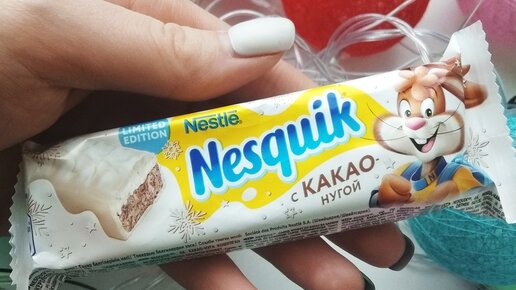 Новинка.Новогодний батончик Nesquik какао+нуга за 26 р. из Магнита. Обзор и оценка лимитированного товара.
