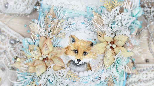 Приветствую всех на моем творческом канале! Хочу представляю вашему вниманию открытку с лисенком и цветочной композицией для новогоднего поздравления. Эту открытку я делала на заказ с учетом пожеланий заказчика. Размер открытки: 17х12 см Открытка выполнена в нежной цветовой гамме: белый, бежевый, голубой. В качестве основы я использовала плотный дизайнерский картон голубого цвета. В качестве фоновых подложек скомбинировала два варианта бумаги для скрапбукинга и два вида кружева. Подложки дополнительно прошила голубой нитью...