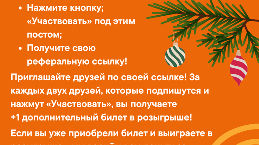 🎁 Приз - 1 билет на Новогоднюю Ёлку в Частной Школе ИНТЕЛЛИГЕНТ 20 или 27 декабря! 🚀 Увеличивайте шансы! Приглашайте друзей по своей ссылке! За каждых двух друзей, которые подпишутся и нажмут «Участвовать», вы получаете +1 дополнительный билет в розыгрыше! ❗️ Важно для тех, кто уже купил билеты: Если вы уже приобрели билет...