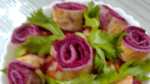 Предлагаю вам приготовить на новогодний стол вкусный и красивый салат "" Букет для любимой". Ингредиенты для салата самые простые: Для блинчиков: Процесс приготовления: Селедку почистить от кожи и костей, мелко порезать и выложить на тарелку, немного смазать майонезом, затем слой вареной моркови, натертой на крупной терке и смазать майонезом, затем слой измельченного огурца с майонезом, далее слой натертого вареного картофеля, смазанного майонезом. Выпекаем блинчики: яйцо смешать с молоком, мукой и щепоткой соли, хорошо размешать...
