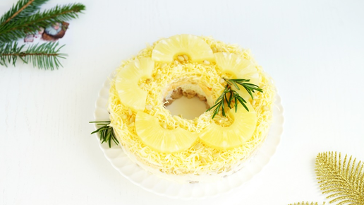 Новогодний салат из курицы и ананаса