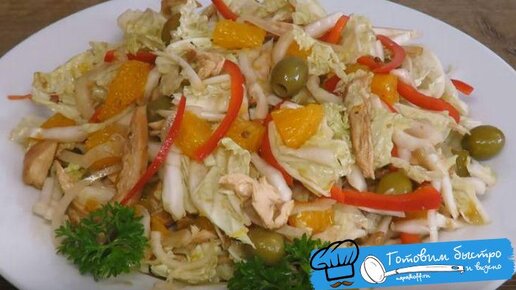 Праздничный новогодний салат с куриной грудкой и апельсинами