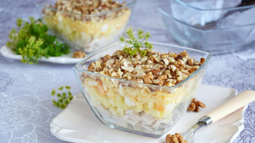 Салат с копчёной курицей на праздничный стол на Новый год или День Рождения