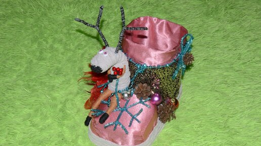 Новогодний сапожок из пластиковой бутылки! Идея подарка своими руками! handmade _ Хендмейд (1)