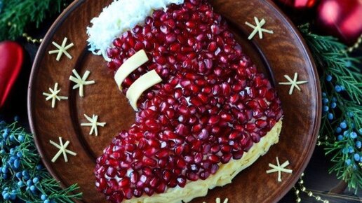 Красиво оформленные яркие салаты-оригинально украсят новогодний стол. Салат новогодний сапожек с гранатом порадует гостей безупречным вкусом и красотой . Готовить быстро,просто и легко.