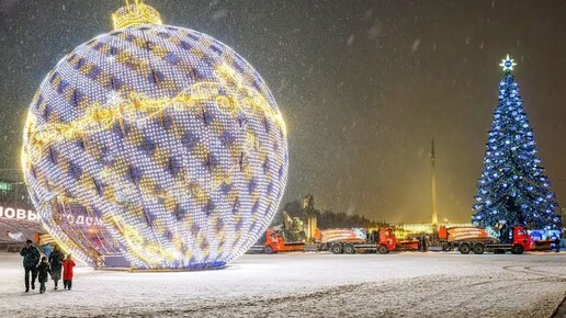 Гигантский новогодний шар на площади Волкова в Ярославле