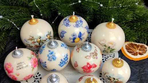 Вот такие шикарные новогодние свечи шары вы можете залить своими ручками в моих молдах