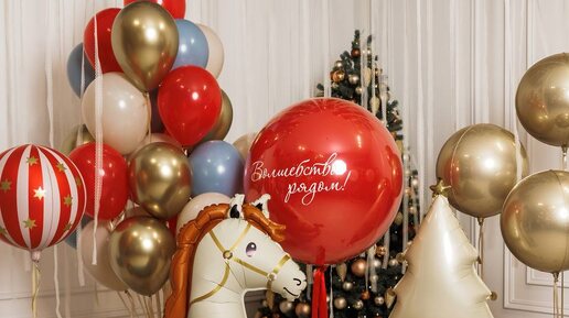 НОВОГОДНИЙ НАБОР ИЗ ВОЗДУШНЫХ ШАРОВ С ЛОШАДЬМИ