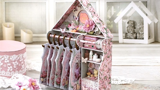 Добрый день! Снова с вами я, Рамзиля. И вот уже 9-ый сезон буду вас вдохновлять своими новыми работами и новыми идеями, чему, конечно же, я очень рада. Сегодня у меня для вас ми-ми-мишняя работа для новорожденной девочки из новой восхитительной винтажной цветочной коллекции "Шебби шарм" - шедоу бокс "Гардероб малышки". Коробка высотой 29.5см, длиной 21см и толщиной 7.5 см, каркас из плотного переплетного картона обклеен со всех сторон нлитами из наборов бумаги. Шедоу бокс состоит из двух частей - гардероб с "платьицами" и шкафчик с полочками для нужных вещей и игрушек...