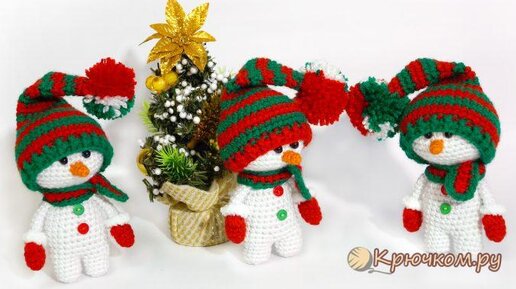 Новогодний снеговик. Игрушка крючком.