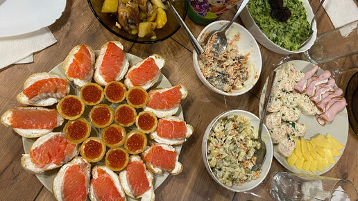 Привет, ребятушки! 🤗 Как праздничные дни проходят? Все салаты и холодцы с заливной рыбой съели? Я дома не отмечала Новый год, поэтому и доедать нечего было 🤷♀️ Столовалась по гостям! Что вы говорите:"Как Новый год встретишь..."!? 😉 Сейчас бы повторить 👇😋 Вроде, и немного блюд было приготовлено, а мы наелись. Салат с черносливом мы с дочкой обожаем! А я могу бесконтрольно есть бутерброды с красной рыбкой и тарталетки с икрой. Мне больше ничего и не надо! 😃 Или первое января повторить 😋 Первого...