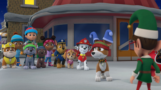 Новогодний праздник команды в Спринг-Сити После успешной стройки землянки, команда Щенячьего патруля, Боб Строитель, Венди, Лео и говорящая техника — Лоффти, Скуб и Мак — собрались на праздничное празднование Нового года. Все началось с украшения землянки. Щенки, как всегда, проявили творчество. — "Маршал, повесь звезду на ёлку!" — крикнул Чейз. Маршал, держа в зубах золотую звезду, пытался залезть на лестницу, но она немного шаталась. — "Осторожно! Только не падай!" — закричал Рокки. — "Я справлюсь!" — уверенно сказал Маршал, но, естественно, поскользнулся и упал прямо в объятия Лоффти...