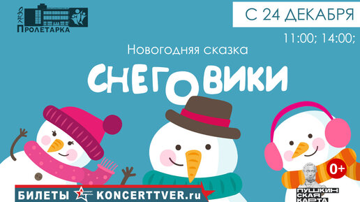 той зимой, в канун Нового Года, с 24 по 25 декабря, а также с 3 по 6 января 2023 года в 11.00 и 14.00 Тверской областной Дворец культуры «Пролетарка» приглашает всех, кто не перестает верить в чудеса, на премьеру увлекательного представления «Снеговики». Новогодний мюзикл с песнями и танцами – это не только яркие эмоции и праздничное настроение, а нечто большее и важное, например, исполнение заветного желания или чья-то сбывшаяся мечта…