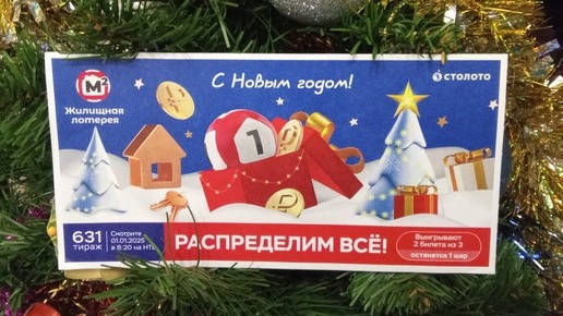 НОВОГОДНИЙ ТИРАЖ ЖИЛИЩНАЯ ЛОТЕРЕЯ ТИРАЖ 631 ОТ 01.01.2025, ПРОВЕРИТЬ БИЛЕТ, СТОЛОТО