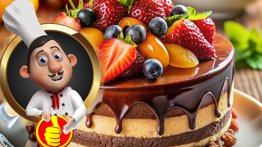 ТОРТ С ШОКОЛАДНЫМИ ПОДТЕКАМИ И ФРУКТАМИ