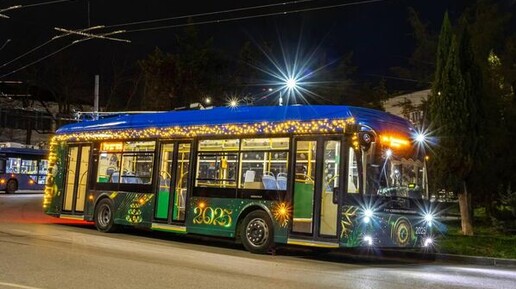 По Севастополю курсирует яркий новогодний троллейбус