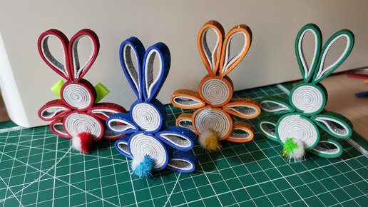 Отличная идея для творчества с детьми 👍🏻 Я же такие поделочки делала в качестве дополнения к подарочку и как сувенир на благотворительную Ярмарку. Не могу сказать, что получила массу наслаждения от работы 😏 Я делала одновременно 4х зайцев, и это было муторно. Зайцы по МК с ютуба (ElenaPodarki). Но я бы советовала внести некоторые изменения, например, в ширину деталей. По МК надо вырезать полоски по 0.7 см. Честно говоря, глаза плывут, потому что даже на одного зайца этих полосок нужно много!...