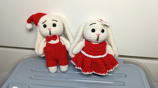Парочка новогодних зайчиков крючком. Подробное описание