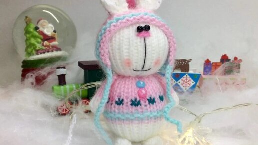 Новогодний зайчик спицами. Схема вязания и мастер-класс