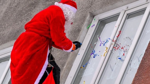 В Новокузнецке сотрудники 2 пожарно-спасательной части устроили сюрприз для ребятишек, вынужденных встречать Новый год в детской больнице имени профессора Ю. Е. Малаховского, Городской клинической больнице №5 и Новокузнецком клиническом противотуберкулезном диспансере. Надев костюмы Деда Мороза, пожарные с помощью альпинистского снаряжения спустились к окнам палат и поздравили ребятишек с Новым годом. И даже устроили им небольшой салют хлопушками...