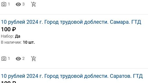 Не так давно 2 мая 2024 года в обращение были выпущены новые монеты из большой серии "Города трудовой доблести". Новые монеты посвящены городам Пермь, Самара, Саратов, Томск. Вот я делал обзор выпуска: А уже сегодня эти монеты можно купить, так как монетные дилеры не дремлют. Я посмотрел цены на самых популярных ресурсах, чтобы быть в курсе тенденции "ажиотажных цен", и увидел такую картину. На "мешке" комплект на данный момент стоит около 350 рублей. Единичные экземпляры (мало ли кому надо одну монету со своим городом) продаются по цене 100 рублей...
