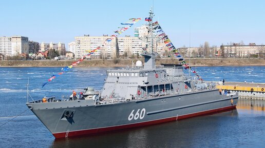 1. На корабле противоминной обороны «Лев Чернавин», построенном корабелами Средне-Невского судостроительного завода, подняли Андреевский флаг. Корабль предназначен для борьбы с морскими минами, которые он способен обнаруживать в воде морских акваторий и в морском грунте, не входя в опасную зону. Для борьбы с минами корабль может применять различные виды тралов, а также телеуправляемые и автономные необитаемые подводные аппараты. 2. На малом ракетном корабле «Наро-Фоминск» поднят Андреевский флаг...