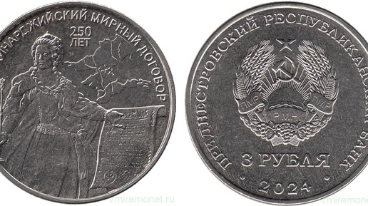 Продолжаем обзор монет Приднестровья, выпущенных в 2024 году. Самое значительное событие нашло отражение на трехрублёвике из серии «Россия в истории Приднестровья»: 250 лет Кючук-Кайнарджийскому мирному договору. 10 июля 1774 года Российская и Османская империи в местечке Кючук-Кайнарджи (современная Болгария) подписали договор, завершивший Первую турецкую войну Екатерины II. Крымское ханство было признано независимым; к России перешли Азов, Керчь, степные земли между Южным Бугом и Днепром; русским кораблям разрешался свободный проход по Босфору и Дарданеллам...