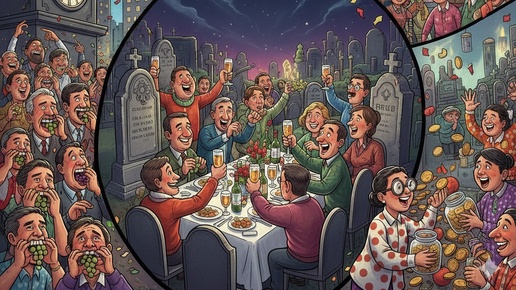 Новый год — праздник надежды, обновления и коллективного помешательства. В одну ночь человечество дружно решает, что если повторять одни и те же ритуалы каждый год, жизнь внезапно наладится. Кто-то ест салат, кто-то обнимает дерево, а кто-то кидается посудой...