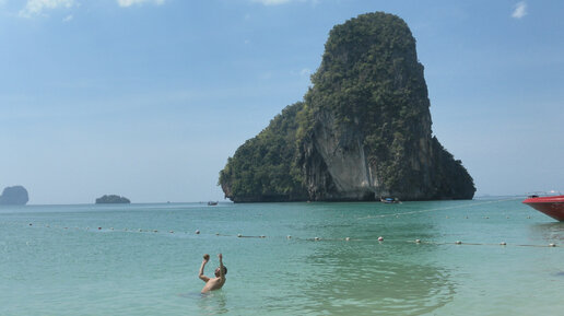 Накануне по время экскурсии на острова Пи-Пи пообщался с соотечественниками, которые успели посетить местные достопримечательности в районе городка Краби, типа раздвоенного утеса, тигриного храма и изумрудного пруда, и решил продолжить пляжно-островную программу пребывания в Краби и посетить пляжи Райлей. Утром как обычно посетил магазин 7/11, где сделал взнос на тайскую сим-карту. Звонил домой с тайской симкарты Truemove, используя обычный набор международного номера (набором 666… не заморачивался)...