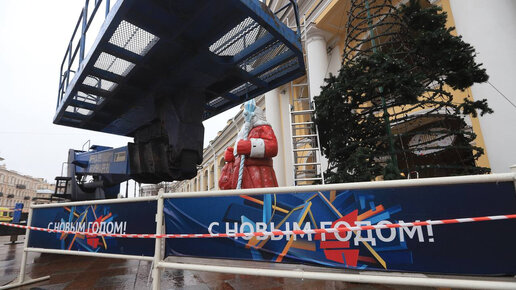 На Невском проспекте установили новогоднюю ель и фигуру Деда Мороза Не успев избавиться от антуража несбывшихся надежд, Петербург проникается духом Нового года. Символы праздника 15 ноября устанавливают на Невском проспекте. Во вторник петербуржцы и туристы могут наблюдать, как напротив Гостиного двора «скелет» ели обрастает искусственной зеленью. Рядом привычное по прошлому году место заняла гигантская фигура Деда Мороза. Место установки пока завешено заградительными лентами. От столкновения с праздничным декором прохожих спасают забором, напоминающим о прошлогодних планах...