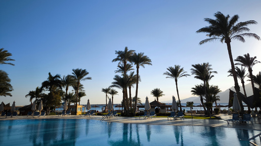 На фото выше бассейн отеля где отдыхаю сейчас. За ним пляж и Красное море...
